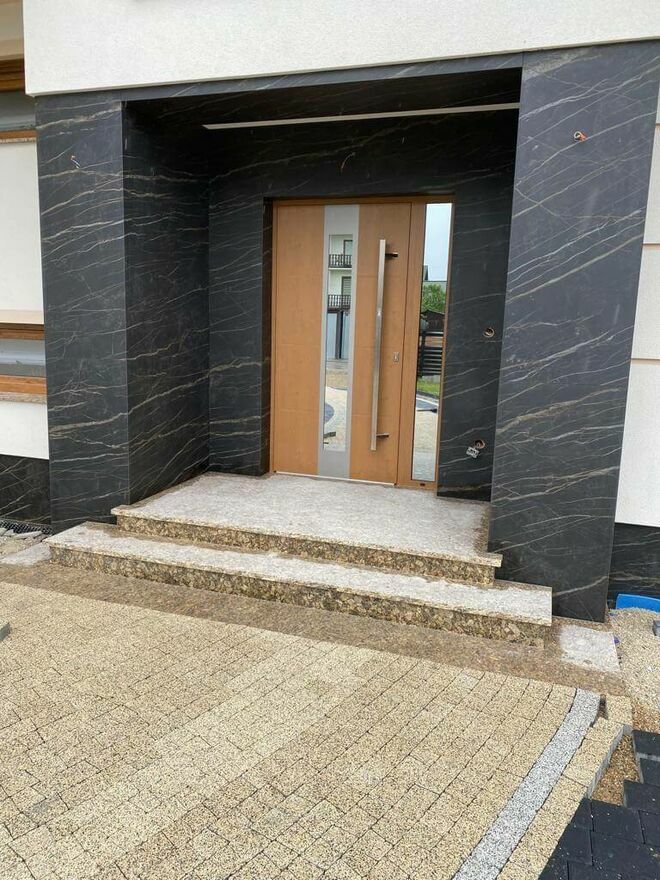 Najwyższa Odporność: Pracujemy na materiałach, takich jak granit (najtwardszy i najbardziej odporny na warunki atmosferyczne), kwarcyty oraz spieki kwarcowe. Nasze fasady są niewrażliwe na upływ czasu, mróz czy promieniowanie UV.